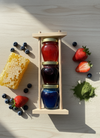 Honig Geschenkset 3×110g – Akazienhonig mit Blaubeere, Spirulina & Erdbeere – Cremig,fruchtig & natürlich – Edles Feinkost Geschenk im Holzgestell – Perfekt als Probierset